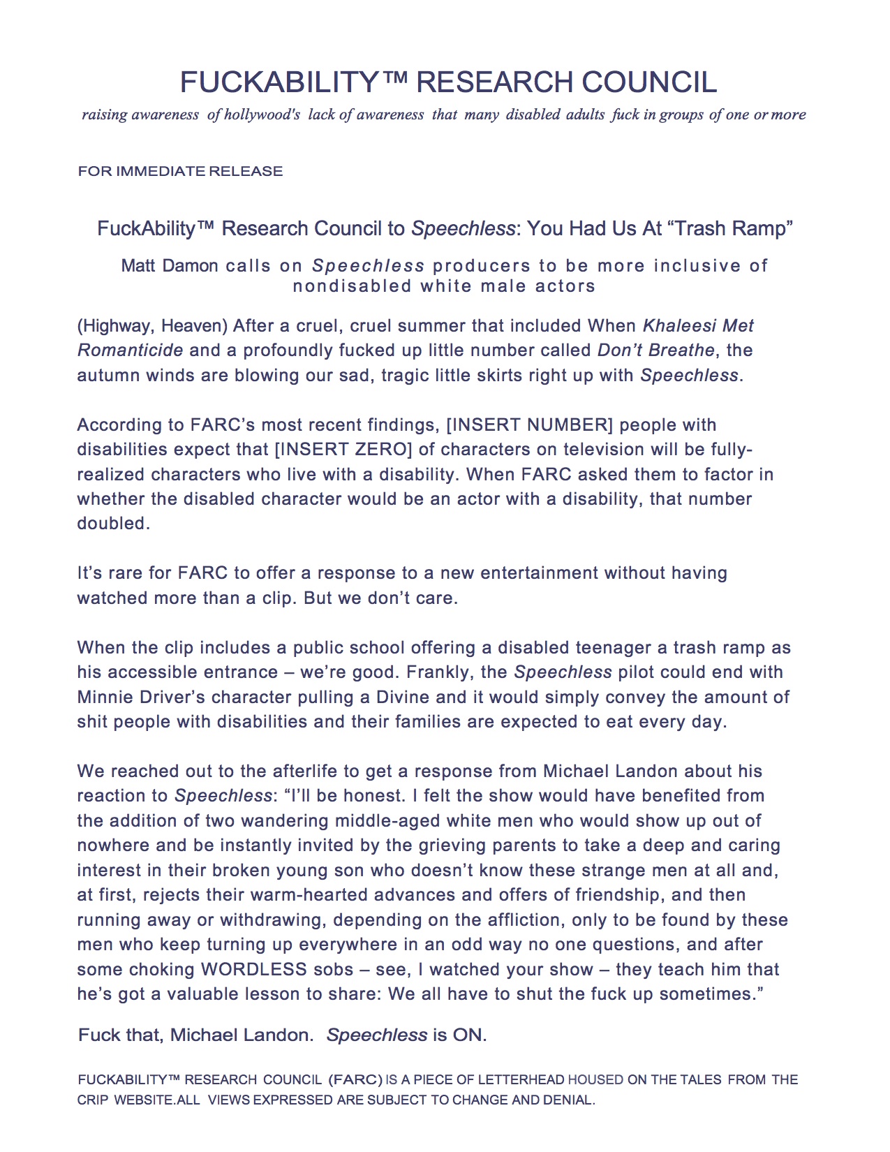 FuckAbility™ Research Council to Speechless: You Had Us At “Trash Ramp”